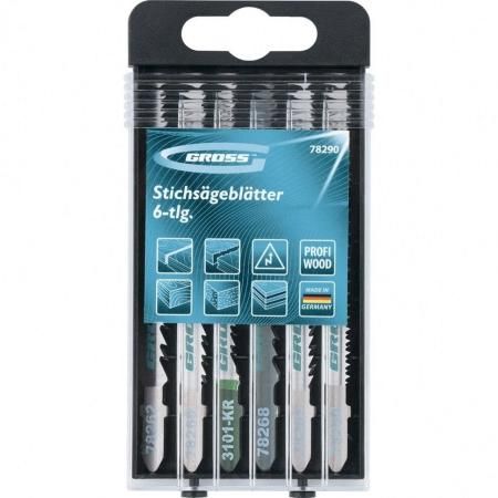 Набор полотен для электролобзика - идеальное решение для работы с деревом. Включает 6 полотен Profi и пластиковый кейс Gross.