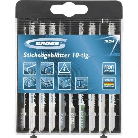 Набор полотен для электролобзика универсальный, 10 шт, Profi, пластиковый кейс Gross идеально подходит для ремонта и монтажа, а также для производства изделий из различных материалов.