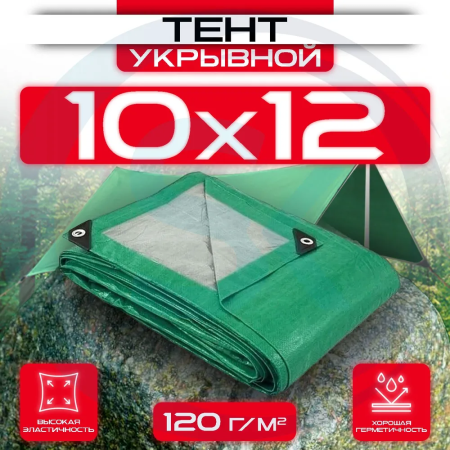 Тент укрывной с люверсами OхISS 10х12 120 г/м2 Зеленый/Серый