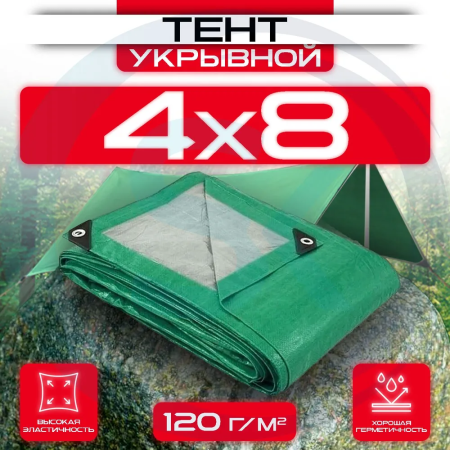 Тент укрывной с люверсами OхISS 4х8 120 г/м2 Зеленый/Серый