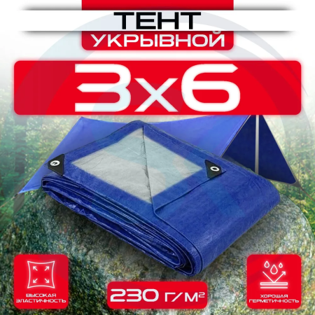 Тент укрывной с люверсами OхISS 3х6 230 г/м2 Темно-синий/серый