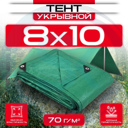 Тент укрывной с люверсами OхISS 8х10 70 г/м2 Зеленый