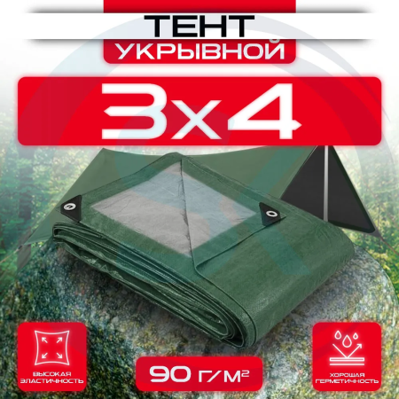 Тент укрывной с люверсами размером 3х4 метра, плотностью 90 г/м2, двустороннего цвета Зеленый/Серый станет незаменимым помощником как на строительной площадке, так и в быту. Он идеально подходит для защиты объектов от дождя, снега, ветра, пыли и других погодных условий. Тент легкий, прочный и долговечный, что делает его удобным и эффективным решением в различных ситуациях.