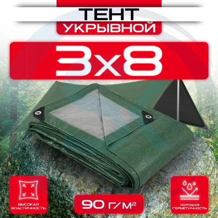 Тент укрывной с люверсами размером 3х8 метра, плотностью 90 г/м2, двустороннего цвета Зеленый/Серый станет незаменимым помощником как на строительной площадке, так и в быту. Он идеально подходит для защиты объектов от дождя, снега, ветра, пыли и других погодных условий. Тент легкий, прочный и долговечный, что делает его удобным и эффективным решением в различных ситуациях.