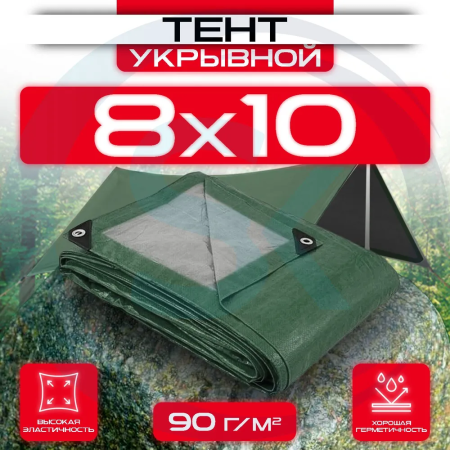 Тент укрывной с люверсами размером 8х10 метра, плотностью 90 г/м2, двустороннего цвета Зеленый/Серый станет незаменимым помощником как на строительной площадке, так и в быту. Он идеально подходит для защиты объектов от дождя, снега, ветра, пыли и других погодных условий. Тент легкий, прочный и долговечный, что делает его удобным и эффективным решением в различных ситуациях.