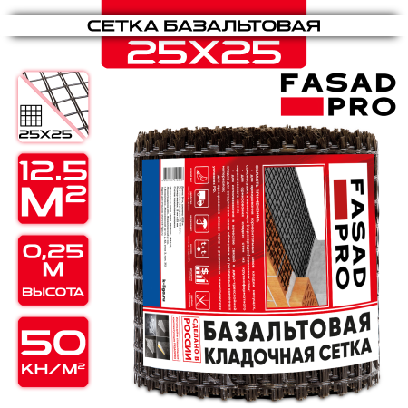 Сетка кладочная базальтовая 25х25 (0,25х50 м) 50кН/м2 FasadPro