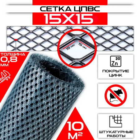 Сетка 15х15 мм 1х10м ЦПВС - надежная оцинкованная рулонная сетка, предназначенная для защиты каркасного дома, вентиляции, теплицы для грядок от грызунов, птиц и других вредителей. Идеально подходит для предотвращения проникновения мышей, крыс и кротов. Высокая прочность материала и надежность крепежных элементов обеспечивают долговечность и эффективность использования.