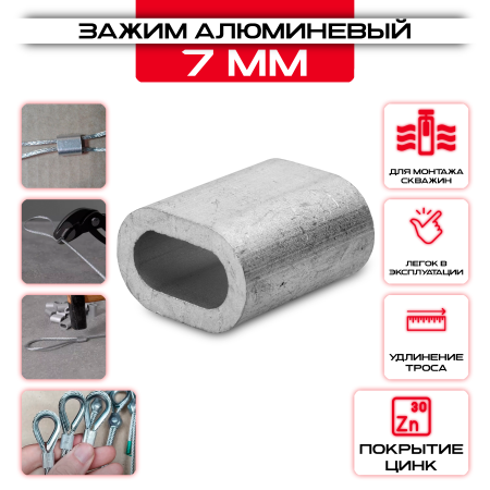 Алюминиевый зажим DIN 3093 с диаметром 7 мм обеспечивает надежное и прочное соединение канатов и тросов. Он имеет легкий вес, высокую прочность и устойчивость к коррозии. Идеально подходит для использования в судостроении, авиации и других отраслях, где важна надежная фиксация.