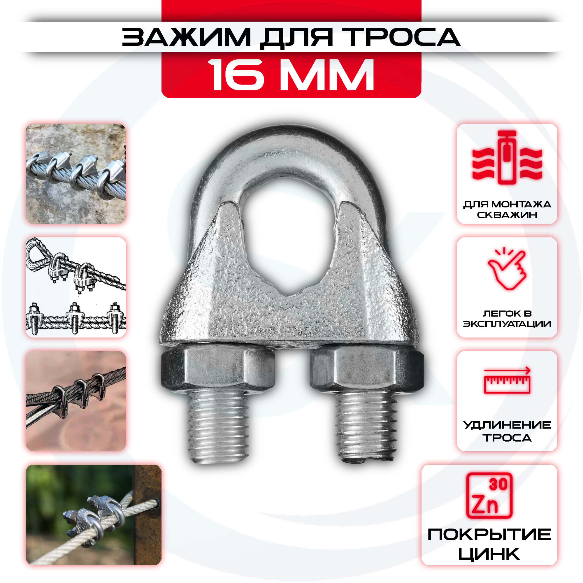 Зажим для стальных канатов 16мм, DIN 741 - надежное крепление для вашего каната
